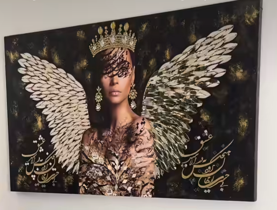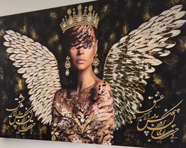 تابلو فرشته با چند صد آینه و نگین. ورق طلا و بهترین گزینه برای خرید یک کادوی جذاب .بدون قاب هست